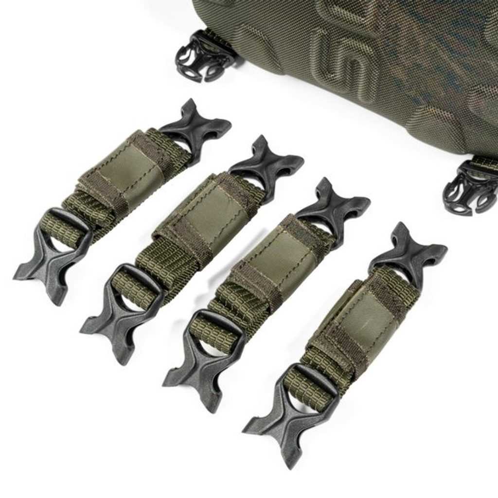 - Tři sady elastických poutek na každé boční kapse pro vidličky a hlásiče