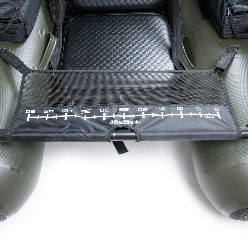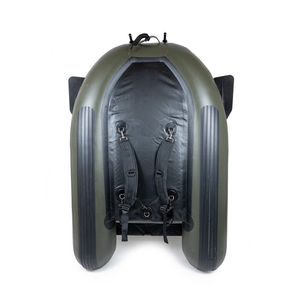Je vyrobený z extrémně pevného silnostěnného 1100 DTEX polyester materiálu. Ze spodu, z boku i na konci obou válců má bezpečnostní lišty, které ho chrání před ostrými kameny a dalšími překážkami. Uvnitř mezi válci je nafukovací podlážka a na ní je přidělaný nafukovací sedák, jehož sklon můžete pomocí popruhu snadno nastavit, abyste se v belly boatu cítili komfortně.