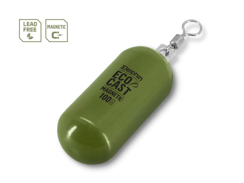 Válcovitý tvar zátěže Delphin EcoCAST ji předurčuje zejména k lovu nahazováním na stojatých vodních plochách. Pro pohodlné upevňování do závěsného klipu je zátěž vybavena obratlíkem s větším očkem. Velkou výhodou oceli oproti olovu je i její magnetičnost, což oceníte v případě odpadnutí zátěže, kdy ji můžete pomocí magnetu opětovně vytáhnout z vody.