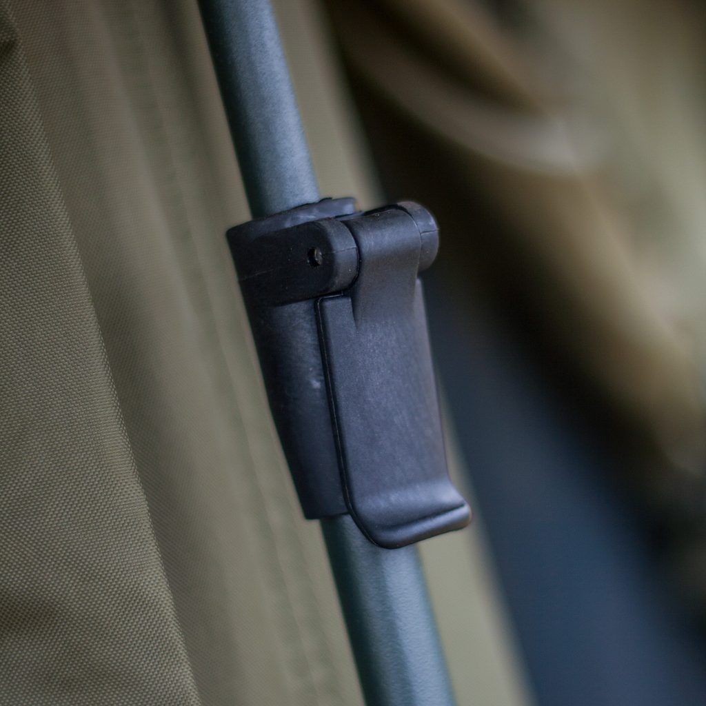 V zadní části brolly je menší ventilační okénko, které je samozřejmě kryto jako v přední části moskytiérou.