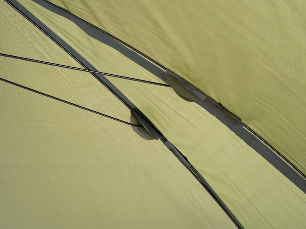 Výšku a sklon deštníku lze přizpůsobit podle potřeby, což zároveň usnadní jeho upevnění i v členitějším terénu.