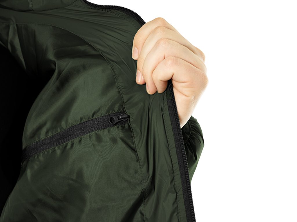 Bunda je velmi pohodlná a příjemná na dotek, a její hřejivý materiál vás skvěle ochrání před chladem a větrem. Větrovka je vyrobena z odolných materiálů a vyniká kvalitním zpracováním. Na větrovce se nacházejí dvě kapsy opatřené kvalitními zipy. Barevná kombinace dvou odstínů zelené vám umožní dokonale splynout s přírodou a zároveň loga s kaprem umístěná na přední a zadní straně bundy o vás prozradí vaši vášeň k rybolovu. Na rukávu se nachází gumová podšívka s logem Delphin.