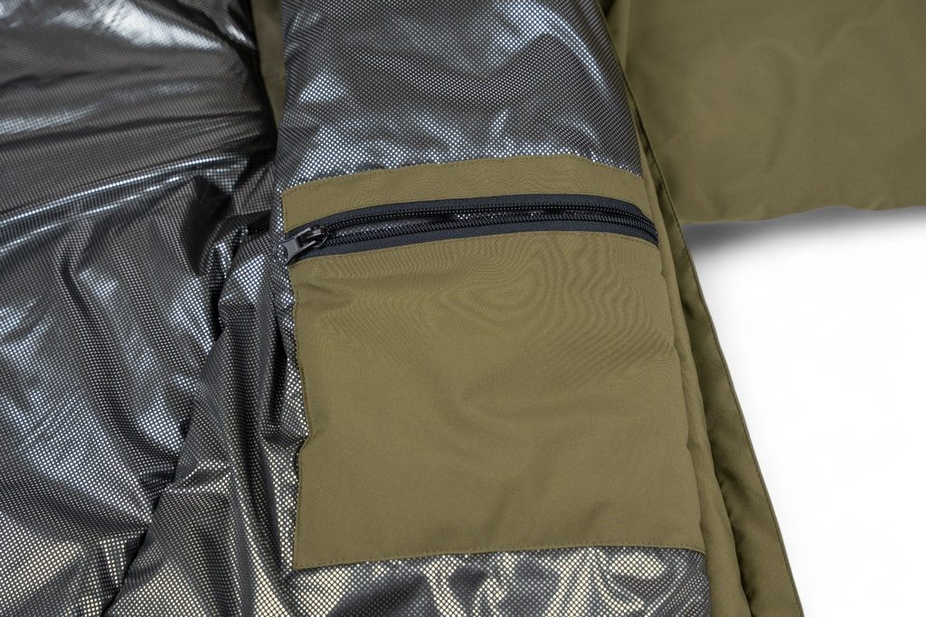 Bunda má voděodolnost 10 000 mm vodního sloupce, stejnou hodnotu má i prodyšnost (10 000 mm). Vnitřní stříbrná folie odráží teplo zpět k tělu a spolu s výplní z dutého vlákna vytváří maximální tepelný komfort. K tomu napomáhá i zateplená nastavitelná kapuce s vnitřním fleecem a stahovací manžety na rukávech. Stejně tak lze dotáhnout i spodní okraj bundy, aby vám neutíkalo teplo. Vzadu je bunda prodloužená aby lépe chránila vaše záda. Bunda je vybavena čtyřmi kapsami, z toho jednou vnitřní a třemi vnějšími – jednou na hrudi a dvěma s vnitřním fleecem v dolní části na ruce. Všechny tři mají vodotěsné zipy.