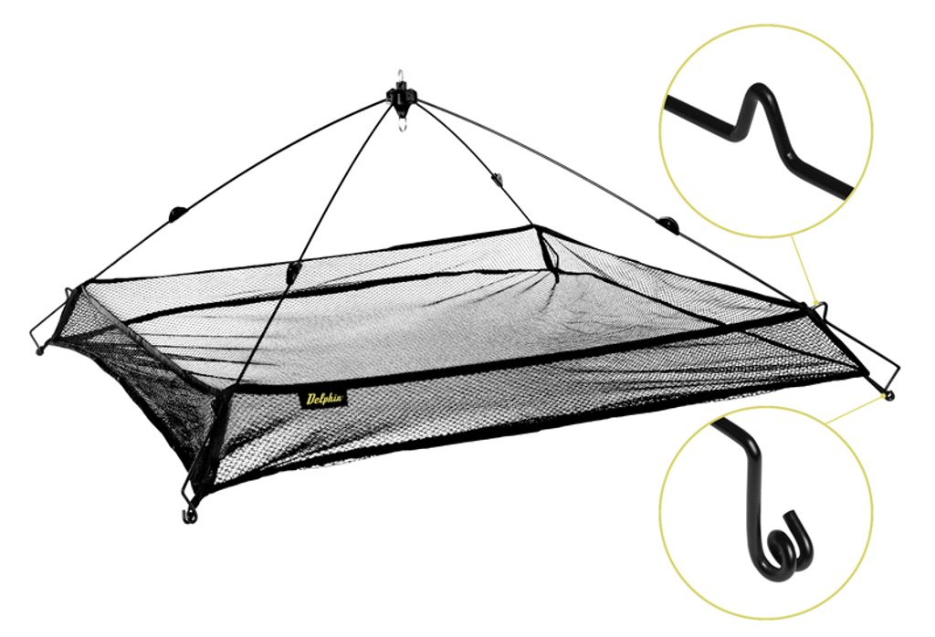 Čeřen od značky Delphin má několik nepřekonatelných výhod. První je výborná skladnost a transportní velikost, další je použití PE síťky. Tento model navíc poskytuje vyvýšené kraje - bočnice a to až do výšky 10cm. To umožňuje výrazně eliminovat únikové šance nástražních rybiček. Kovová ramena jsou výklopná, což zajišťuje opravdu rychlou montáž na lovném místě. Z vrchní části je umístěn kroužek, určený pro připevnění rukojeti s háčkem (není součástí balení). V neposlední řadě překvapí i výborná cena tohoto špičkového čeřenu!