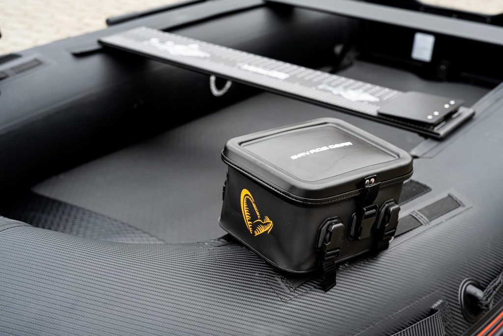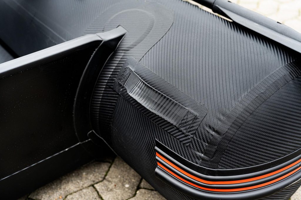 Extra široký pro větší vnitřní prostor a větší stabilitu. S téměř milimetr silnými stěnami. Velké silné podložky na dně a podlaha s protiskluzovou ochrannou vrstvou z EVA materiálu. Vyrobeno ze skvěle vypadajícího PVC materiálu v karbonovém designu. Dodáváno se dvěma pevnými EVA taškami a s jedinečným neuvěřitelně stabilním systémem uchycení.