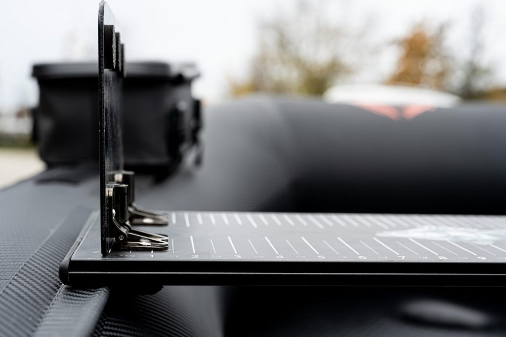Pravděpodobně nejpozoruhodnějším prvkem na tomto člunu je vestavěné měřidlo se sklopným čelem, dostatečně dlouhé pro měření velkých okounů, dlouhých bolenů a obrovských candátů.
