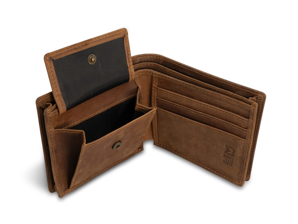Stylová kožená peněženka vylepšená klasickým motivem kapra, která bezpečně uchová vaše doklady i hotovost. Obsahuje několik přihrádek na platební a zákaznické karty, zapínací kapsu určenou pro mince, případně žetony a samozřejmě nechybí dvě přihrádky pro uložení bankovek.