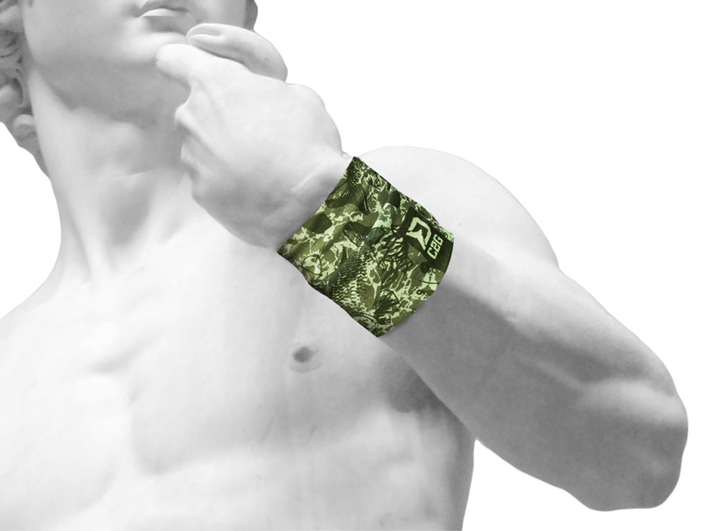 Multifunkční šátek s jedinečným kamuflážovým designem, který spojuje prvky kaprařské bižuterie se siluetami samotných kaprů.