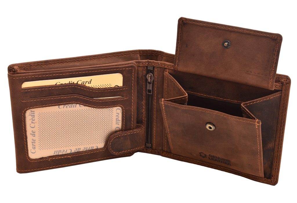 Kožená pánská peněženka z kvalitní kůže nabídne přesně ten komfort, který majitel dobré peněženky potřebuje. Tento model obsahuje několik chytrých přihrádek na karty a osobní doklady. Rovněž nezapomíná ani na fotky, které si můžete umístit do průhledných přihrádek.