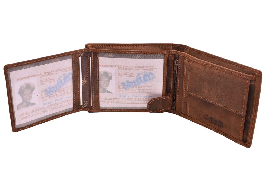 Tato peněženka je vyrobena z hovězí kůže v úpravě hunter a je velmi populární u lidí, kteří mají rádi rustikální a přírodní styl. Kůže je zpracována a barvena podobným způsobem jako semiš, a tedy zachovává si poněkud drsný povrch. Jednou z typických vlastností pro peněženky z kůže hunter je to, že aktivním používáním se díky olejovému základu vytvoří patina, což znamená, že peněženka přirozeně ztmavne.