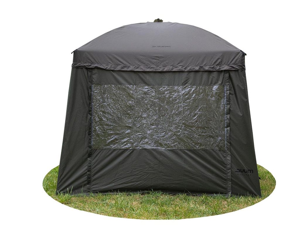Rybářský deštník DUUM 250 Full Cover má revoluční a ojedinělou konstrukci. Krytý půdorys 2,5x2,5m je díky použití čtyř zesílených sklolaminátových ramen přísně čtvercový, což umožňuje stoprocentní využití vnitřního prostoru. S odlehčeným rámem se lépe manipuluje a ulehčuje stavbu celého deštníku. Kryt zipu je umístěný pod ramena.