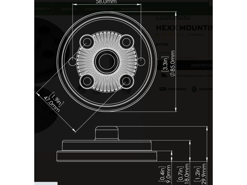 Nízkoprofilový držák pro připevnění a výměnu těžkého příslušenství HEXX na rovném povrchu.