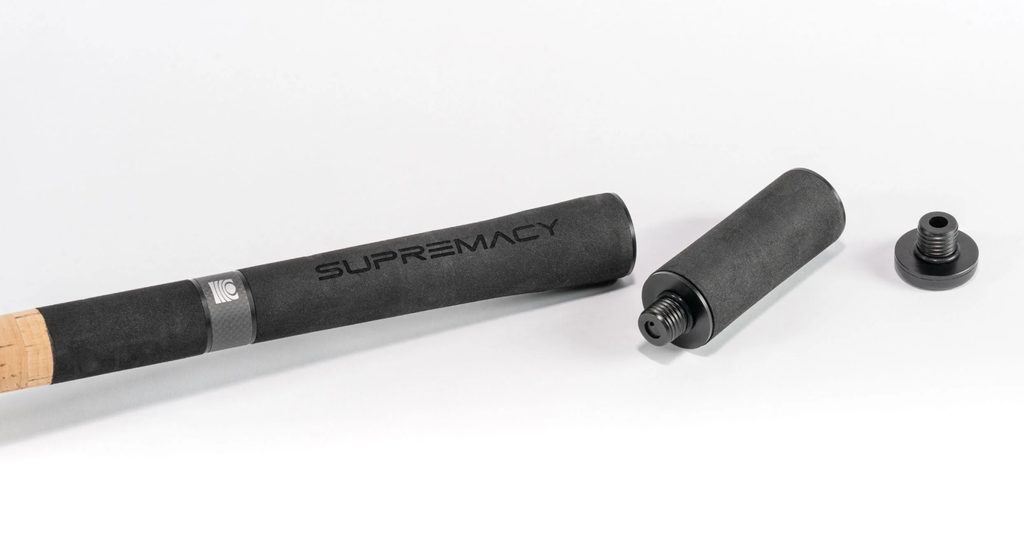 Rukojeť kombinuje přírodní korek a EVA materiál, což zvyšuje komfort a jistotu úchopu i za mokra. Prut je dodáván se třemi vyměnitelnými karbonovými špičkami různých tuhostí pro přizpůsobení podmínkám.