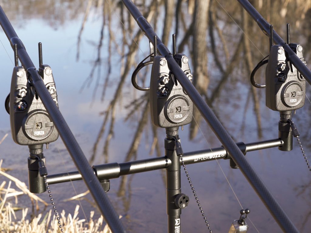 Výsuvná ramena jsou ze spodní části seříznuta do roviny, takže po utažení pojistných šroubů perfektně drží na místě a nepřetáčejí se. Vrchní závity obsahují matice umožňující utažení každého typu signalizátoru nebo rohatinek přesně do roviny s hrazdou. FlexiBUZZ je vyrobena z pevného hliníku, s odolnou povrchovou úpravou, které bylo dosaženo pomocí práškové černé barvy.