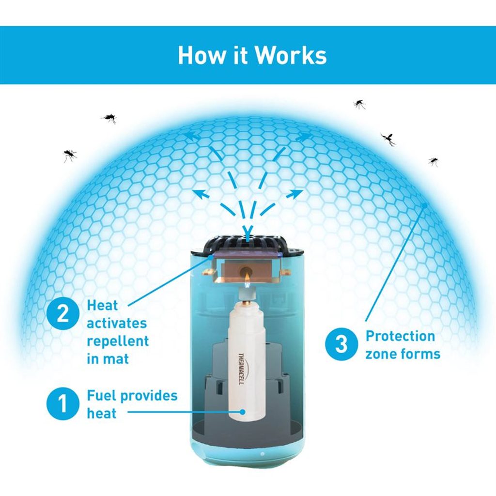 Princip fungování spočívá ve vypařování účinné látky, při zahřívaní napuštěného polštářku a to bez přítomnosti otevřeného ohně.
