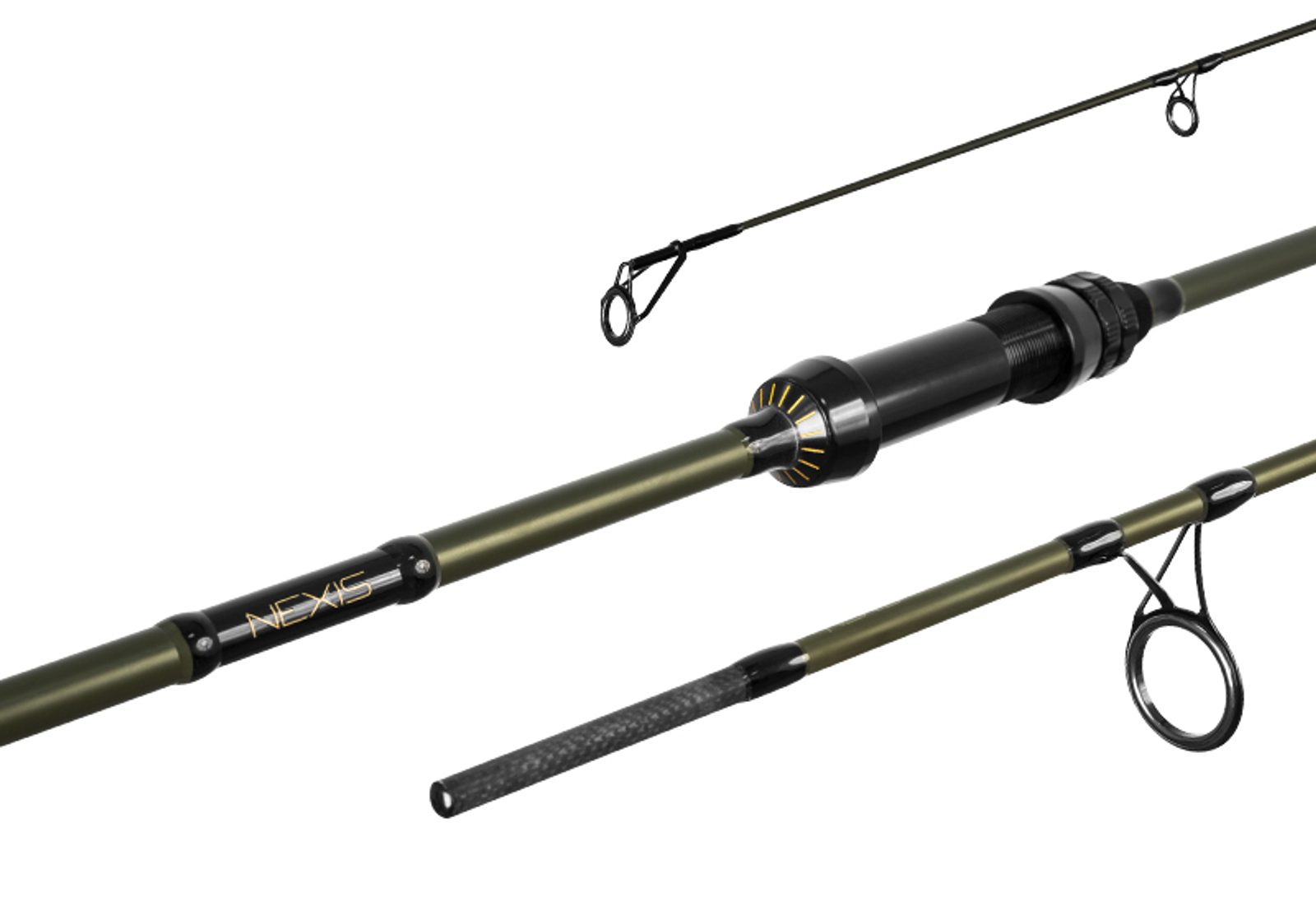 NEXIS si tak snadno s jiným nespletete. Tento nepřehlédnutelný kaprařský prut s blankem v matné, army-zelené barvě s černými lesklými detaily a zlatou grafikou je vizuálně přitažlivým celkem. Podtrhuje ho i netradiční, masivní celokovové sedlo na naviják. Má dvojitou pojistku pro utažení a svou konstrukcí je postaveno tak, aby nezklamalo ani při nejextrémnější zátěži. Komfort dotvářejí části vyhotovené z EVA pěny. Nexis má štíhlý karbonový 24T blank vysoké jakosti s plně parabolickou akcí a poskytuje výborný kompromis mezi dlouhými náhozy a příjemnou zdolávačkou. Dvoupatková očka mají vysoce odolnou výplň SiC. Rukojeť prutu je efektně ukončena pomocí hrušky z EVA pěny s náběhem z černého shrink tube materiálu, díky čemuž padne prut skvěle do ruky. Nexis je prutem, s nímž máte o dokonalou zábavu postaráno!