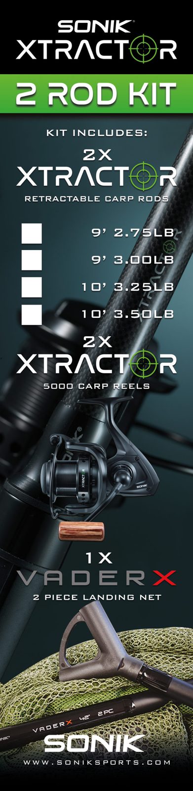 Sonik Pruty s navijáky a podběrákem Xtractor 2 Rod Carp Kit 10' 3m 3,25lb