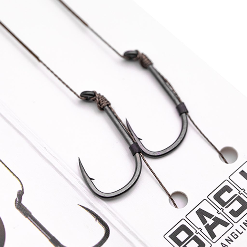 Montáže BASIX Ready Tied Hair Rigs jsou hotové montáže které stačí jen vytáhnout z balení a jsou připraveny k použití, vše, co jen musíte udělat, je přidat boilie nebo waftersky, a můžete nahodit! Tyto montáže jsou navázanébz nové potahovaní šnůrky v Camo verzi BASIX Coated Hooklink která je ztažená před háčkem BASIX Wide Gape, tak aby měl háček volný pohyb a efektivněji se zasekával.