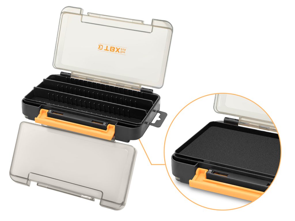 Spodní část krabice je vystlaná EVA pěnou, která chrání hroty háčků a udržuje je vždy ostré. Drážky v pěně umožňují snadné upevnění návazců, samotných háčků či jiných drobných nástrah – včetně much, což ocení i příznivci muškařiny.