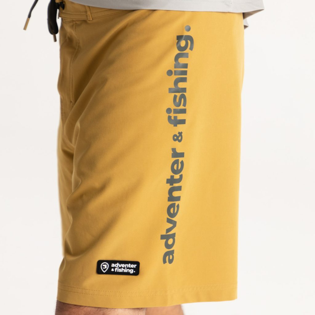 Pánské kraťasy Adventer & fishing v pískově hnědé barvě Sand s tmavě hnědým nápisem jsou určené především pro rybaření v teplých krajinách. Využijete je ale také při vodních či plážových sportech, nebo při procházkách v přírodě a ve městě. Ultralehký materiál je rychleschnoucí, pružný, vodoodpudivý a prodyšný. Šortky jsou vybaveny kapsou s voděodolným zipem a tkaničkami pro pohodlnou úpravu velikosti.