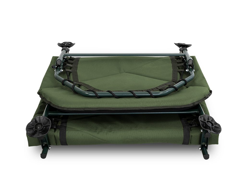 Jeho základem je velmi pevná, odolná a zároveň lehká konstrukce zelené barvy, která spolu s osmi nohami dodává lehátku potřebnou stabilitu. Výškově nastavitelné nohy jsou na koncích opatřeny robustními patkami na kulových čepech, což jim umožňuje přizpůsobit se nerovnostem terénu. Pár nohou pod hlavou je navíc opatřen zajišťovacím mechanismem, což usnadňuje rozložení lehátka a zároveň zabraňuje nechtěnému sklápění či posunu.