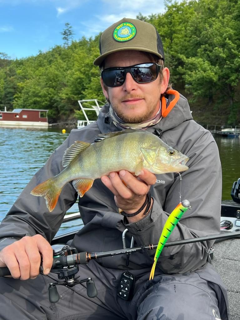 Okoun s oblibou vyhledává zarostlá místa, kde mu vodní rostlinstvo slouží jako úkryt, například v rákosových porostech. V tekoucích vodách ho najdete zejména v tišinách, pod vymletými břehy, kde jsou kořeny stromů, ale i za skalami, balvany, a mostními pilíři. Ve stojatých vodách se rádi zdržují okolo nápadných vyvýšenin.