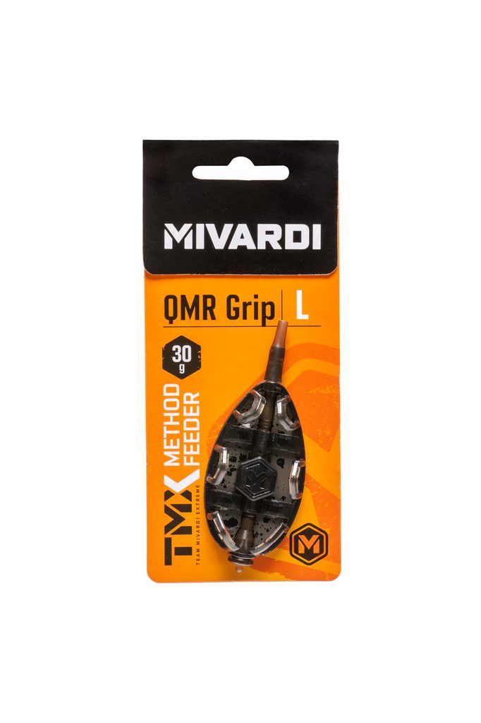 Unikátní method krmítko od značky MIVARDI se systémem QMR. Ten umožňuje snadnou výměnu krmítka na hotové montáži za jiný typ nebo velikost krmítka QMR během několika vteřin.