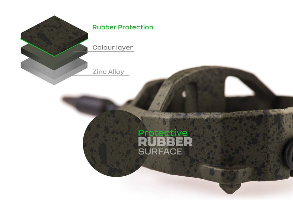 - Pogumované matně zelené provedení s černými tečkami - skvělé maskování