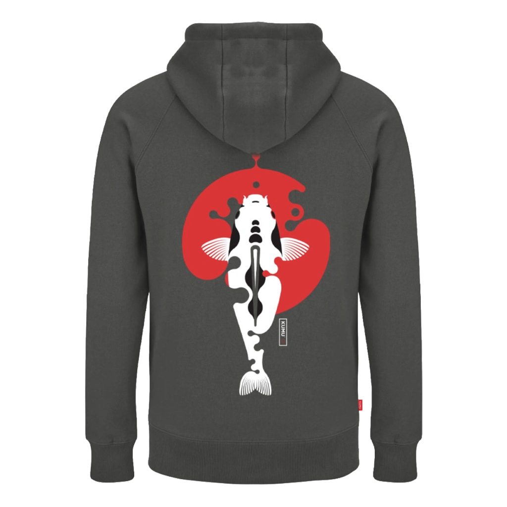 Během tvůrčího procesu jsme studovali použití červené barvy v japonském umění a její význam. To v kombinaci s láskou ke kaprům Koi a jejich znakům vedlo k tomu, co se stalo klasikou všech dob. Tříbarevný sítotisk na super měkké organické látce o gramáži 320 g s tkaným bočním štítkem.