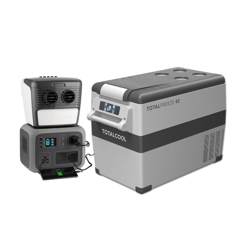 Je velmi kvalitní s obrovskou funkčností. Dodává se s 12V zásuvkou, 4x USB zásuvkou, jednou s rychlým nabíjením, novou zásuvkou typu C, 10amp bezdrátovým nabíjením nahoře, 2x DC 12V / 3amp jacky, a protože má vestavěný měnič, má 2x síťové zásuvky střídavého proudu (maximální výkon 300W), takže můžete používat zařízení s nízkou spotřebou energie (např.notebooky, LED světla a některé elektrické nářadí. Rozsah Totalfreeze bude trvat 30-50 hodin a Totalcool 3000 více než 50 hodin v závislosti na rychlosti ventilátoru.