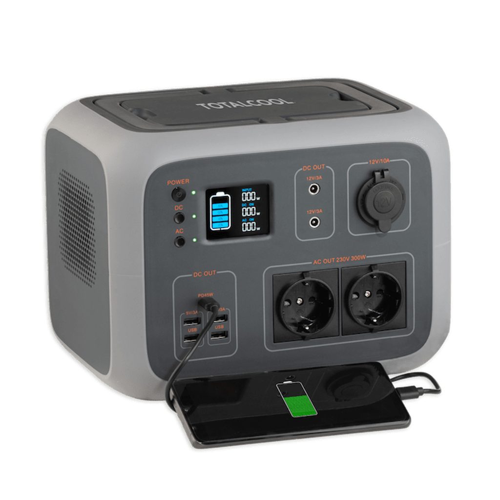 Totalpower 500 je velmi lehký a přenosný, váží pouze 6,5 kg. Nabíjení ze sítě trvá jen 6-7 hodin a lze jej nabíjet také v autě přes 12V zásuvku nebo 100-120W solární panel pomocí dodaných kabelů MC4 nebo TOTALSOLAR 100 od TOTALCOOL.Ideální pro karavany, markýzy, stany, obytné vozy, lodě, dny na pláži, turistiku, zavazadlovém prostoru vašeho vozidla a všude tam, kde nemáte napájení.