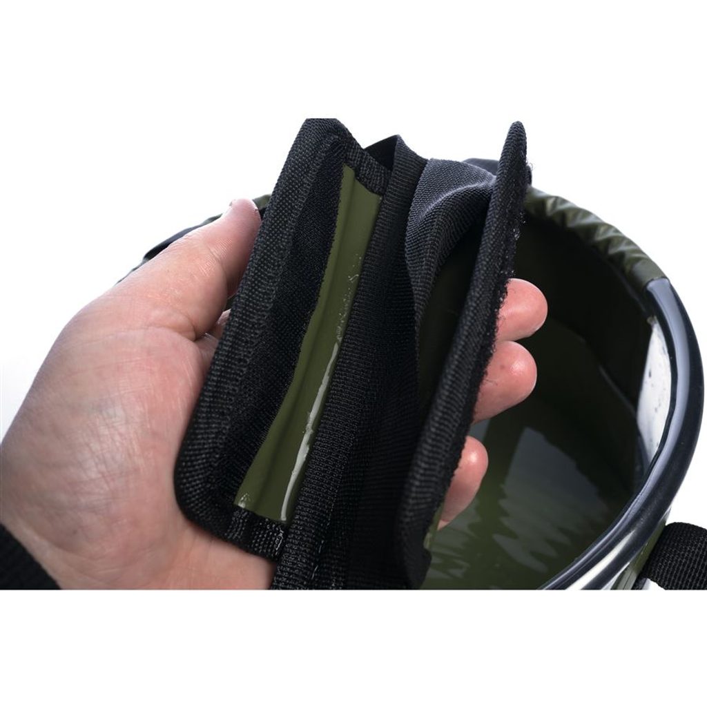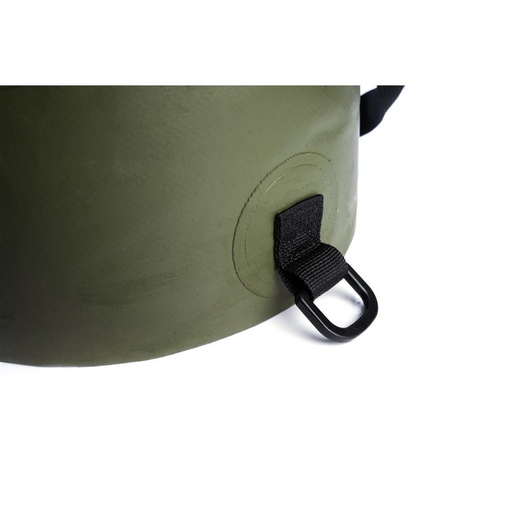 Díky své skládací konstrukci šetří místo při přepravě a zároveň poskytuje dostatečný objem pro vodu, ryby nebo nářadí. Odolný materiál a pevné dno zajišťují stabilitu i při plném naplnění, zatímco ergonomické držadlo umožňuje pohodlné přenášení.