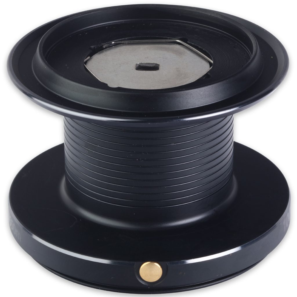 Černá kovovává náhradní cívka ve velikosti 10000 k navijáku Deluxe FD9000.