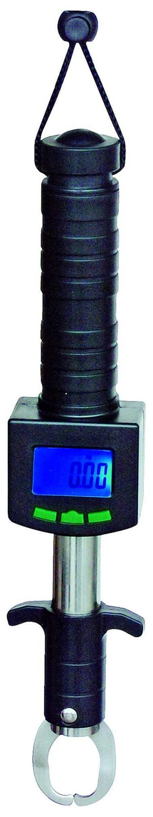 Kvalitní rybářská váha s vylovovacími kleštěmi vhodná pro lov dravců. Nastavení probíhá pomocí gumových tlačítek, disponuje všemi potřebnými funkcemi, hodnoty jsou dobře čitelné na modře podsvětleném 3-místném displeji. Je napájena 2x AAA baterií (není součástí balení). Váha ve svých útrobách uschovává také svinovací metr.