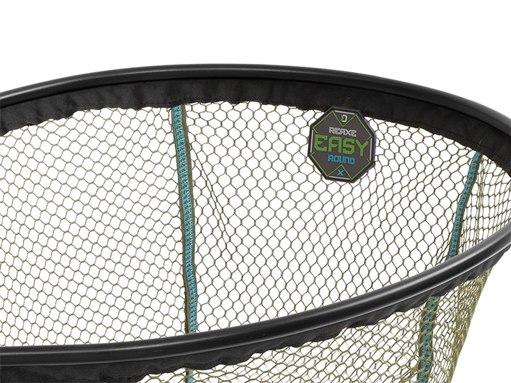 Podběráková hlava oválného tvaru ze série REAXE disponující lehkým a pevným hliníkovým rámem černé barvy. Síťka REAXE EasyROUND zelené barvy má kvalitní prošívání a je vyrobena z klasické jemné tkaniny, takže je šetrnější k uloveným rybám než pogumované nebo nylonové síťky. Pod rámem je navíc prošita černou látkou po celém obvodu pro zvýšení pevnosti a odolnosti.