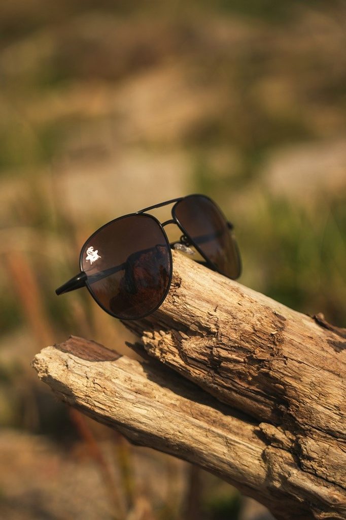 Polarizační černé brýle Black Cat ve stylu pilotek s hnědými skly.