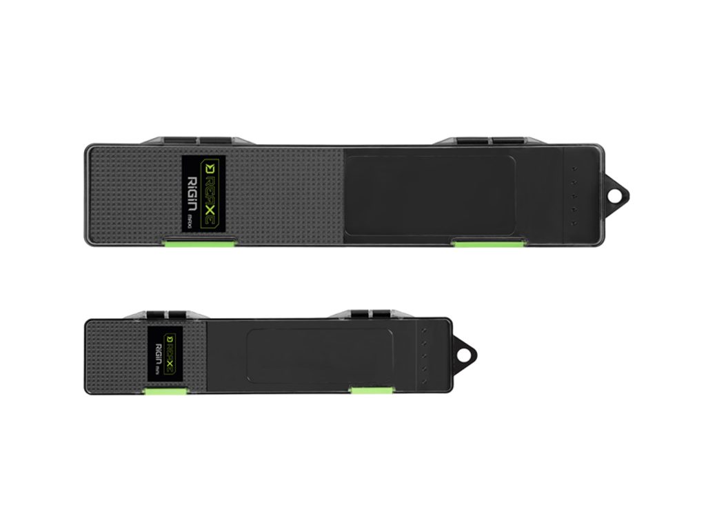 Vrchní část je vyhotovena z průhledného plastu, což vám umožňuje dokonalý přehled o uložených návazcích bez nutnosti otevírání. Box se uzavírá pomocí dvou pevných klipů v křiklavě žluté barvě, které zaručují, že se RIGIN maxi samovolně neotevře ani v přeplněné tašce. Navzdory své délce si zachovává plochý profil, díky čemuž nezabere mnoho místa, ale výrazně urychlí vaši přípravu přímo u vody.