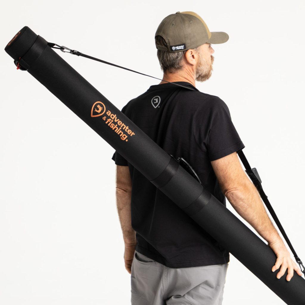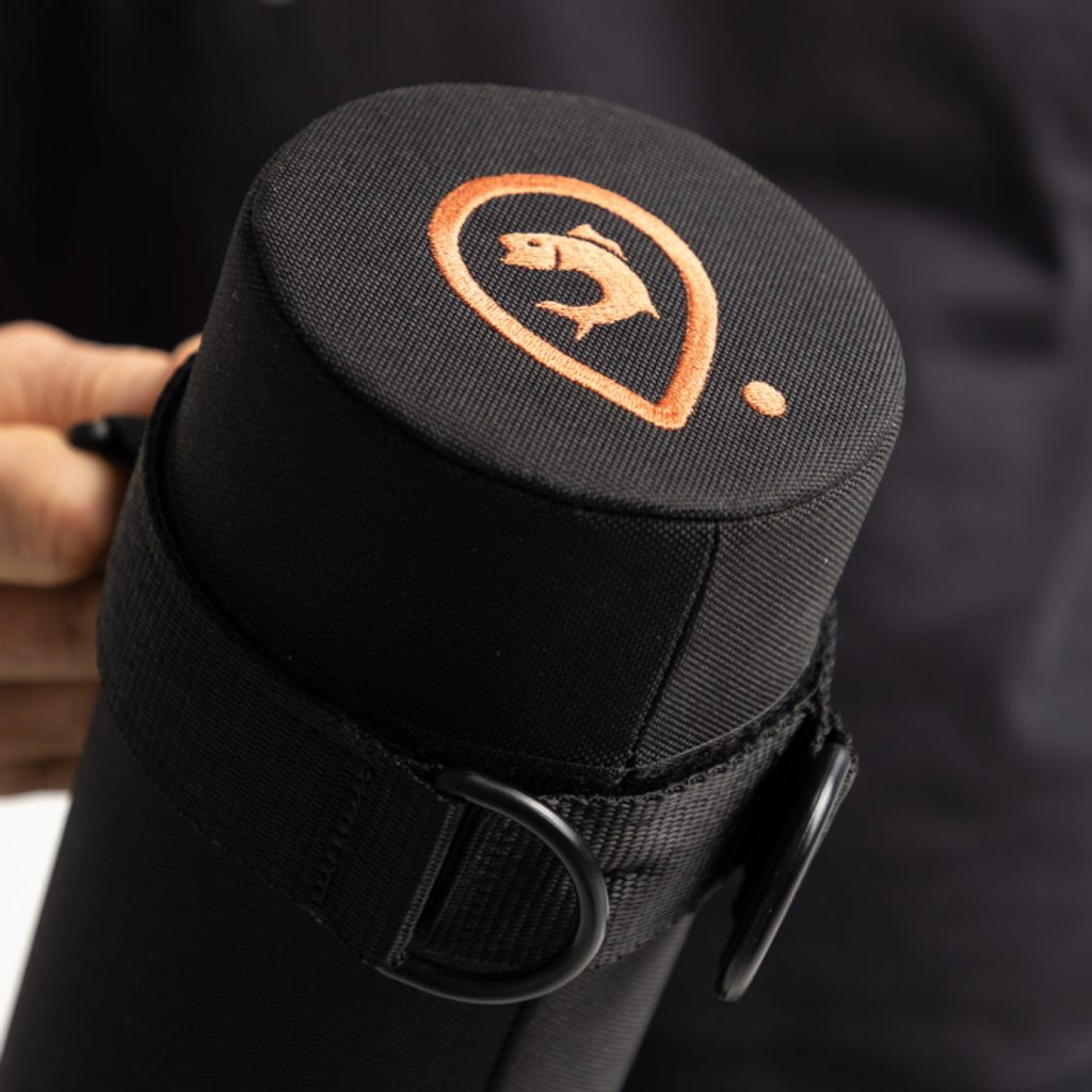 Třívrstvý obal na pruty v černé barvě Black s oranžovým vyšívaným logem Adventer & fishing. Polypropylenový tubus je odolný proti vodě, nárazu i teplotám. Má nastavitelný popruh a možnost uzamčení na visací zámek. Obal lze personalizovat vlastním jménem a vlajkou.