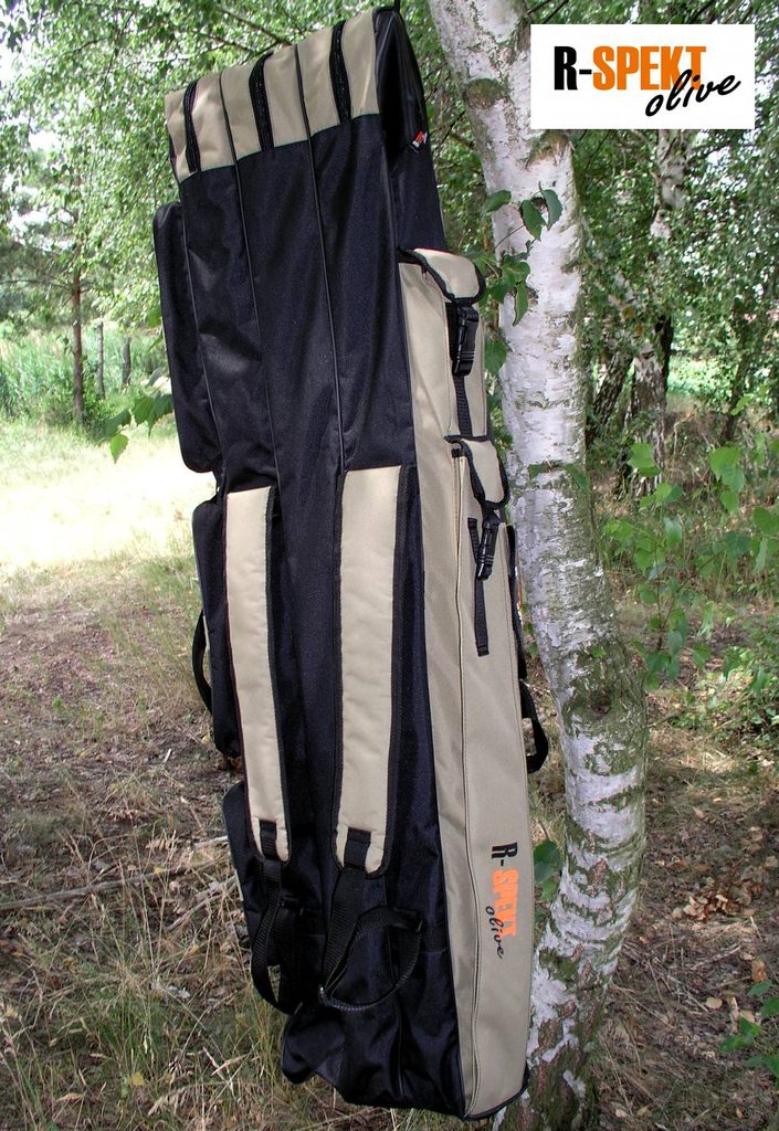 140cm dlouhé tříkomorové pouzdro na rybářské pruty je určeno především pro bezpečné uložení tří rybářských prutů s navijákem a veškerého dalšího nutného vybavení. Vyrábí se v zajímavém tvaru a barevné kombinaci černé a olivové barvy s decentním oranžovým logotiskem edice "R-SPEKT olive".