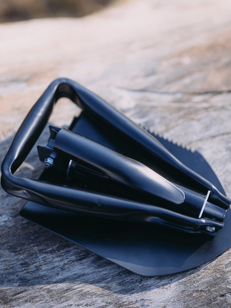 Všestranná skládací lopatka z ocelo-uhlíkové konstrukce se šroubovací hlavicí pro bezpečné uzamčení při používání.