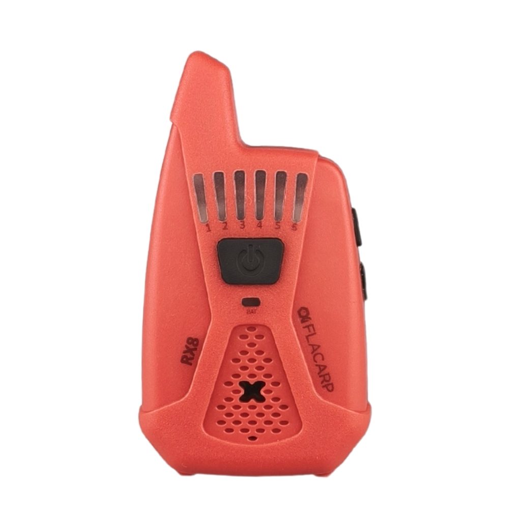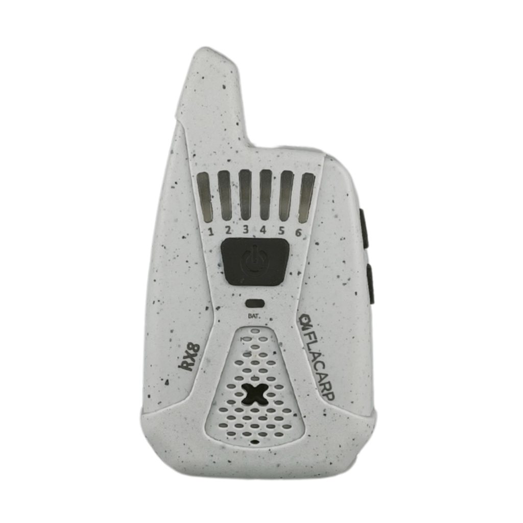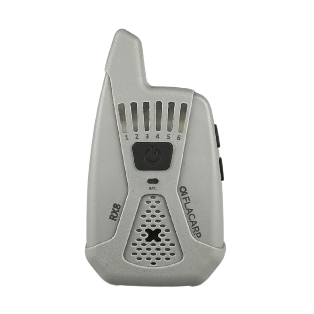Bezdrátový příposlech FLACARP RX8 převzal od svého předchůdce RX7 skvělé parametry (velký dosah až 1km, 12 kanálů, možnost ovládání až 4 světel FLACARP) a přidává další užitečné funkce: díky funkci blokace alarmových čidel již nebudete poslouchat žádné zbytečné alarmy. Signál z čidel je potlačen při záběru nebo lze alarmy vypnout jedním stlačením tlačítka na příposlechu. Byla vylepšena také funkce upozornění při nežádoucím vypnutí signalizátoru záběru jednoznačným kolísavým tónem. Zcela přepracována byla funkce ukládání (učení) dalších signalizátorů a čidel – vše je nyní mnohem jednodušší.