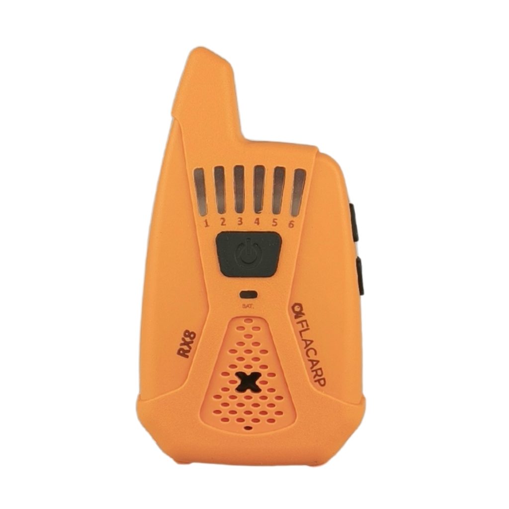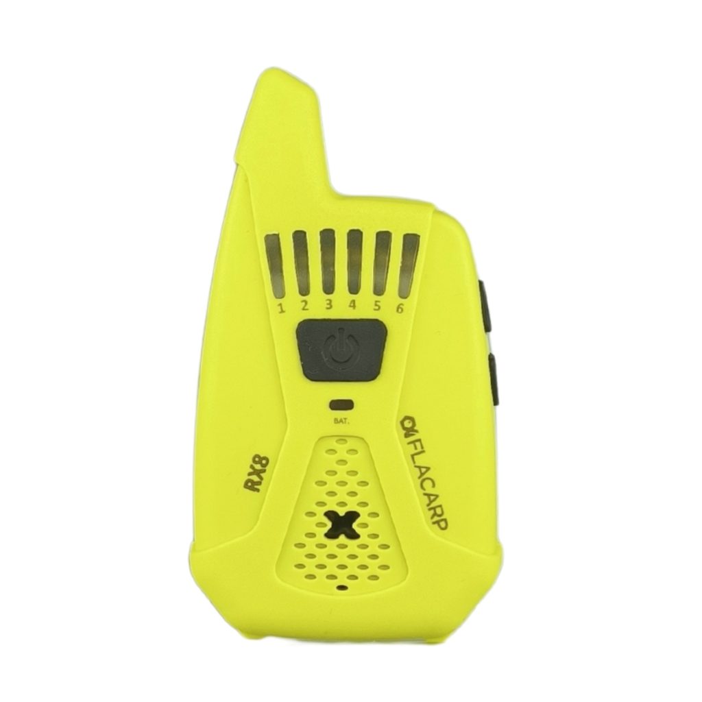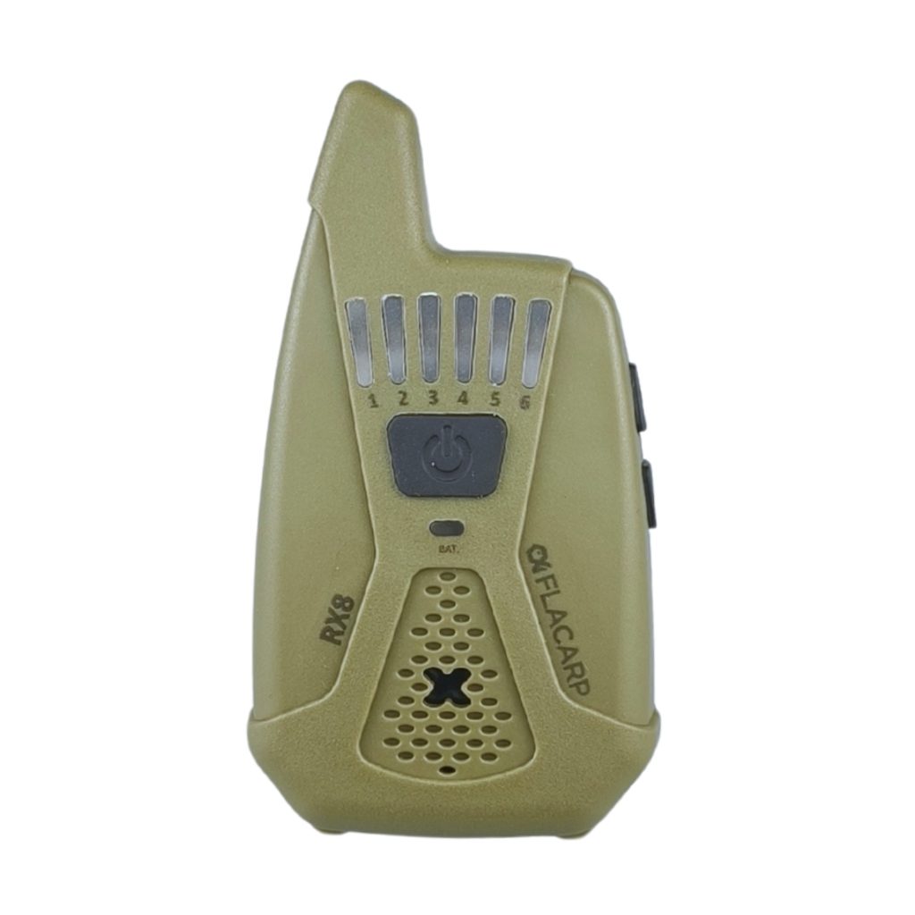 Bezdrátový příposlech FLACARP RX8 převzal od svého předchůdce RX7 skvělé parametry (velký dosah až 1km, 12 kanálů, možnost ovládání až 4 světel FLACARP) a přidává další užitečné funkce: díky funkci blokace alarmových čidel již nebudete poslouchat žádné zbytečné alarmy. Signál z čidel je potlačen při záběru nebo lze alarmy vypnout jedním stlačením tlačítka na příposlechu. Byla vylepšena také funkce upozornění při nežádoucím vypnutí signalizátoru záběru jednoznačným kolísavým tónem. Zcela přepracována byla funkce ukládání (učení) dalších signalizátorů a čidel – vše je nyní mnohem jednodušší.