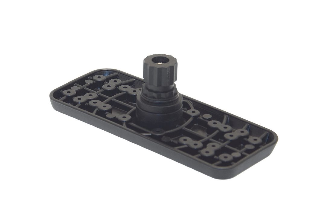 Stojná noha obrazovky sonaru se upevňuje s pomocí šroubů do plochy. Na spodku plochy je upevňovací bod, který zasunete a pojistkou zajistíte do jakéhokoli rychloupínacího držáku Fasten.