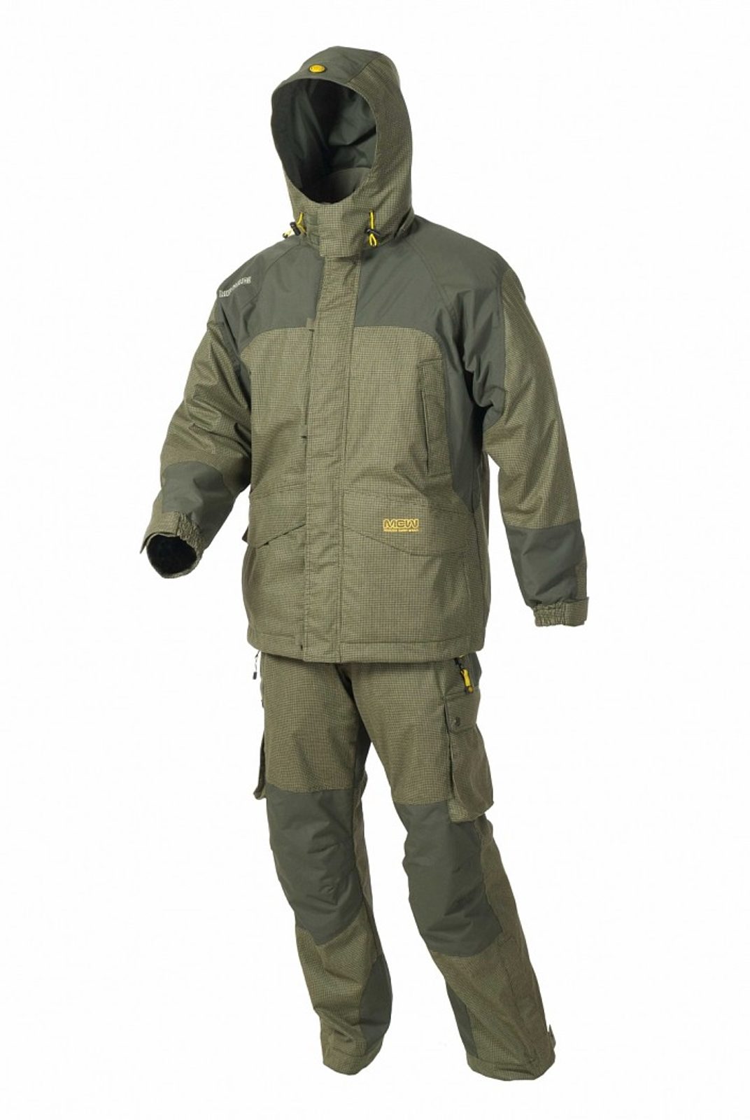 Pokud by se minimální množství vody ve skutečně extrémních situacích dostalo skrz první membránu (na vnější vrstvě), bude s jistotou zachyceno druhou membránou (na prostřední vrstvě). Samozřejmě obě tyto membrány jsou stejně prodyšné a tím zajišťují konstantní odvod par. Tento vícevrstvý systém efektivně chrání i proti větru. Vnější vrstva je tvořena z odolného ripstop materiálu, kombinovaného s vysoce oděruvzdorným materiálem na ramenou, kolenou a zadní části kalhot. Oba tyto materiály mají pokročilou hydrofobní úpravu. Tato impregnace výrazně zvyšuje celkovou úroveň ochrany proti vlhku a dešti a snižuje špinění obleku. Funkční vnitřní bunda je odepínatelná, lehká, hřejivá a dobře prodyšná. Optimálně navržený střih umožňuje pohodlné sezení i chození stejně jako nahazování, vnadění nebo zdolávání ryby bez omezení pohybu. Lemy rukávů i nohavic jsou nastavitelné pomocí širokých suchých zipů. Táhla zipů jsou prodloužena šňůrkami a umožňují snadné uchopení i v rukavicích.
