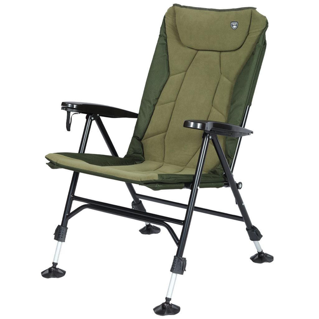 Rychlé sestavení a snadné polohování opěradla, pomocí područek, tak dělá křesílko ideálního parťáka na rybářské výpravy.