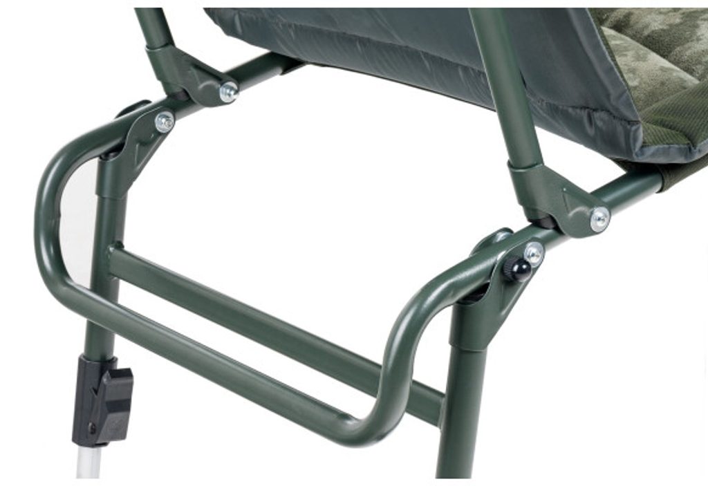 Speciálně tvarovaná zadní část rámu dosedá na lehátko celou plochou a brání tak lokálnímu poškození výplně spacáku nebo matrace lehátka. Křeslo je vybaveno silným polstrováním pohodlným fleece potahem v unikátním CamoCODE designu. Je osazeno samovýsuvnými nohami a výkyvnými patkami proti zaboření.