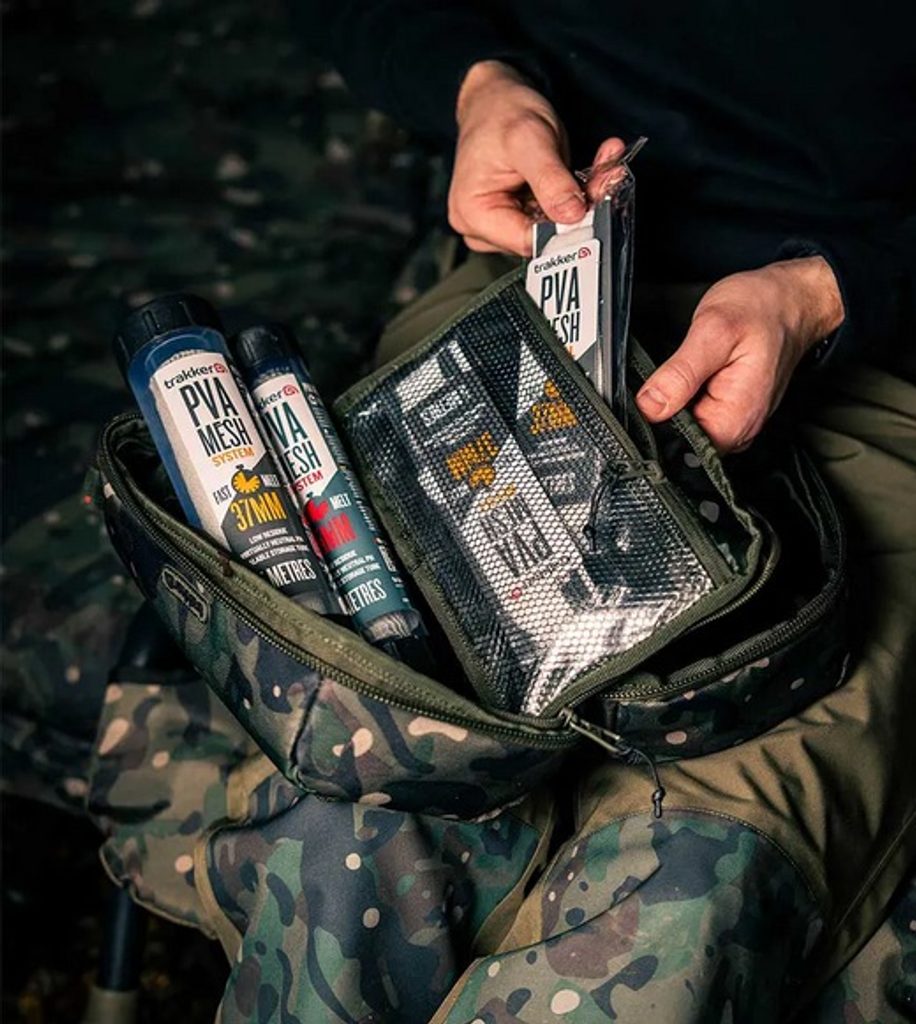 Pouzdro NXC PVA Pouch je mnohem víc, než název napovídá… původní verze, navržená pouze pro skladování PVA produktů, se následně rozšířila pro uložení dalšího velkého množství příslušenství a je dost možná jedním z nejoblíbenějších kaprařských zavazadel v historii rybářství.