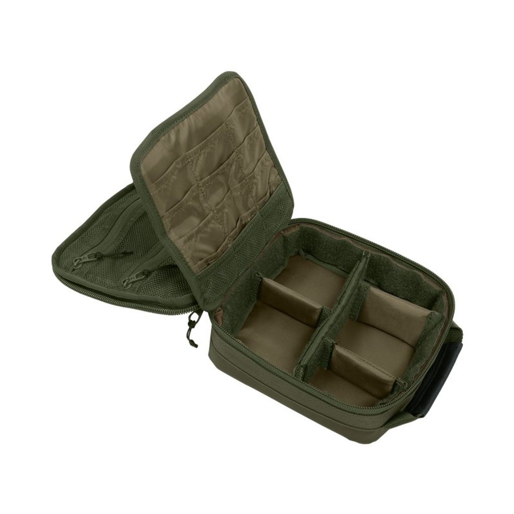 Má dvojité, pevné zipy pro snadný přístup, je vyroben z odolné látky n-dura, vodotěsné dno a madlo pro snadné usazení do anebo z kapes větších přepravních tašek.