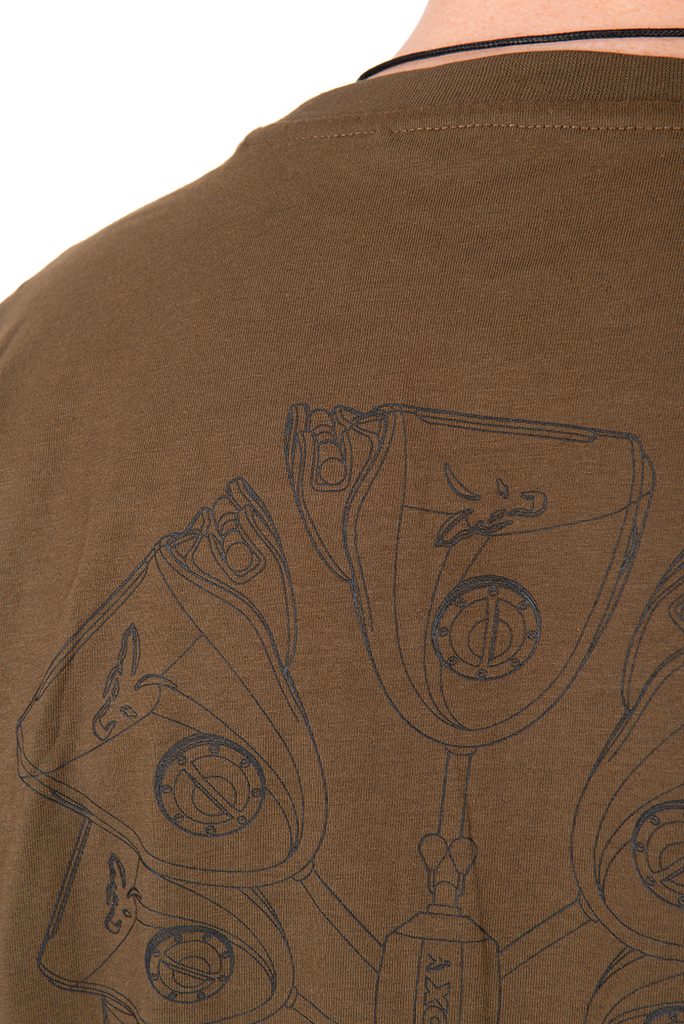 Tričko s grafickým motivem ryby a indikátoru záběru.