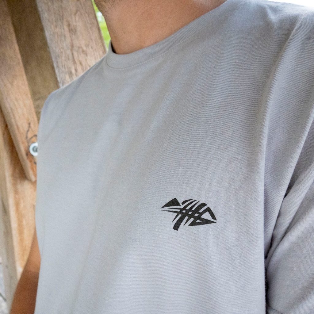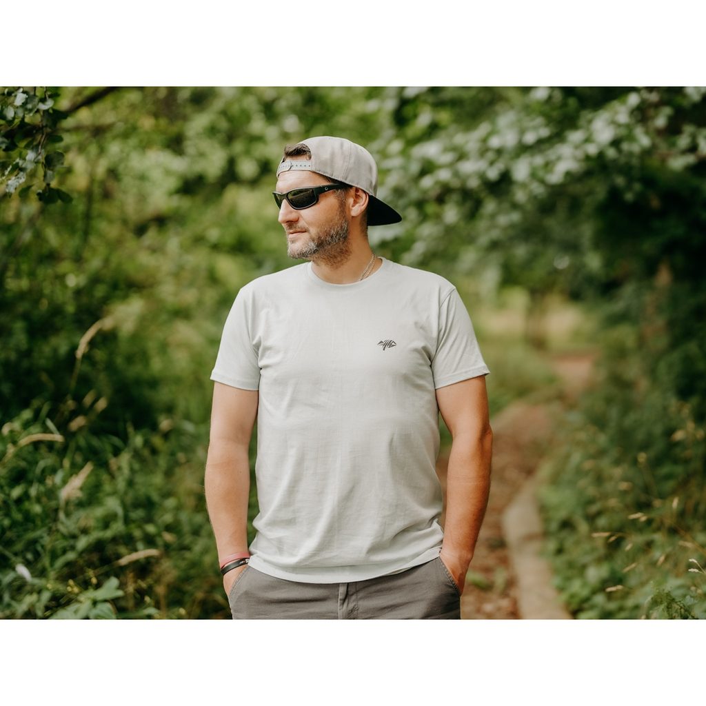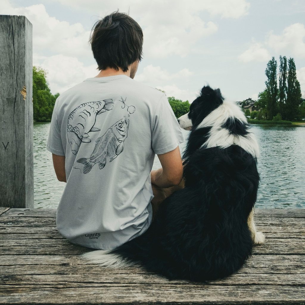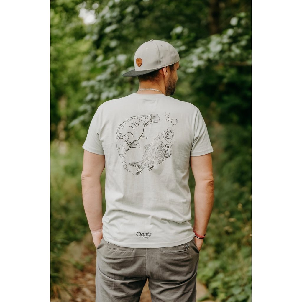 Kvalitní tričko v šedé barvě s naším originálním designem živého/mrtvého kapra na zádech a decentním logem výrobce na hrudi.